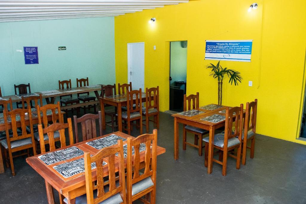A alimentação é acompanhada por nutricionista, que elabora cardápios saudáveis e adaptados às necessidades de cada paciente. O refeitório é espaçoso, limpo e acolhedor, estimulando a convivência harmoniosa entre os acolhidos.